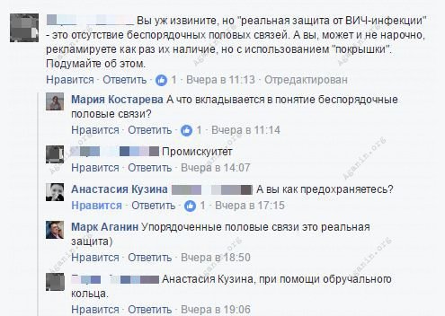 Ну вот откуда они такие наивные берутся? Обручальное кольцо — это, конечно, хорошо, однако вот в нашем микрогородке мы стабильно имеем 40+ новых случаев ВИЧ-инфекции в год. А в Екатеринбурге их тысячи. И двух третей этих случаев не было бы бы, вспомни человек о презервативе. Например, Н., который весело сходил в клуб. Или А., которая познакомилась с парнем, а он умер, но ей в наследство оставил ВИЧ.